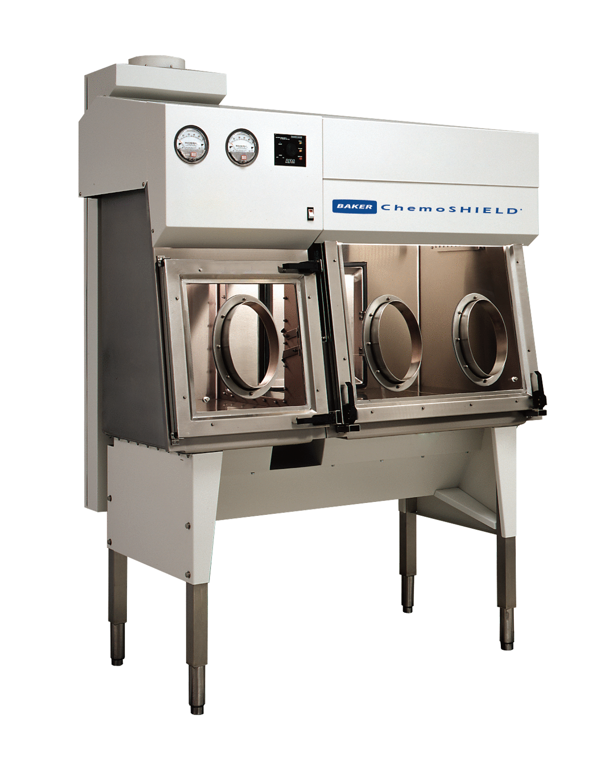 A Compounding Aseptic Containment Isolator (CACI) designed for the containment of hazardous chemotherapy and other agents and IV admixtures. ChemoSHIELDยฎ negative pressure compounding aseptic containment isolators offer a contained, leak-tight (tested to AGS standard), negative pressure work area suitable for hazardous pharmaceutical compounds, chemotherapy agents or IV admixtures that can be harmful to pharmacy personnel.